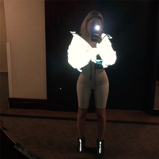 Leuchtende Streetwear-Jacke für Damen – Reflektierende Daunenjacke | Japanische Streetwear